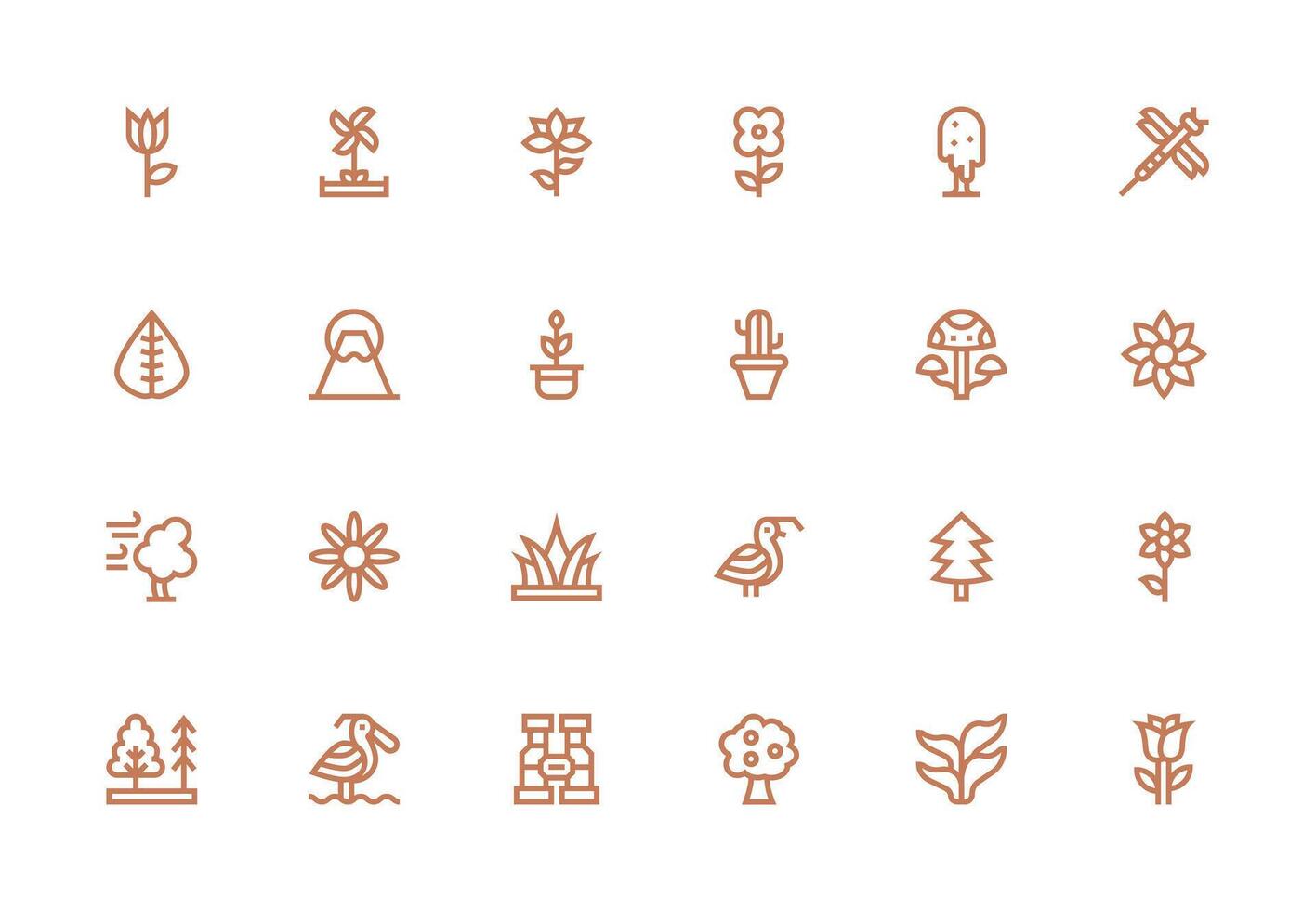 Nature Icon Icon Set with 24 Thick Line Line Graphics Simple Icons for Interface and Wireframes Free Vector