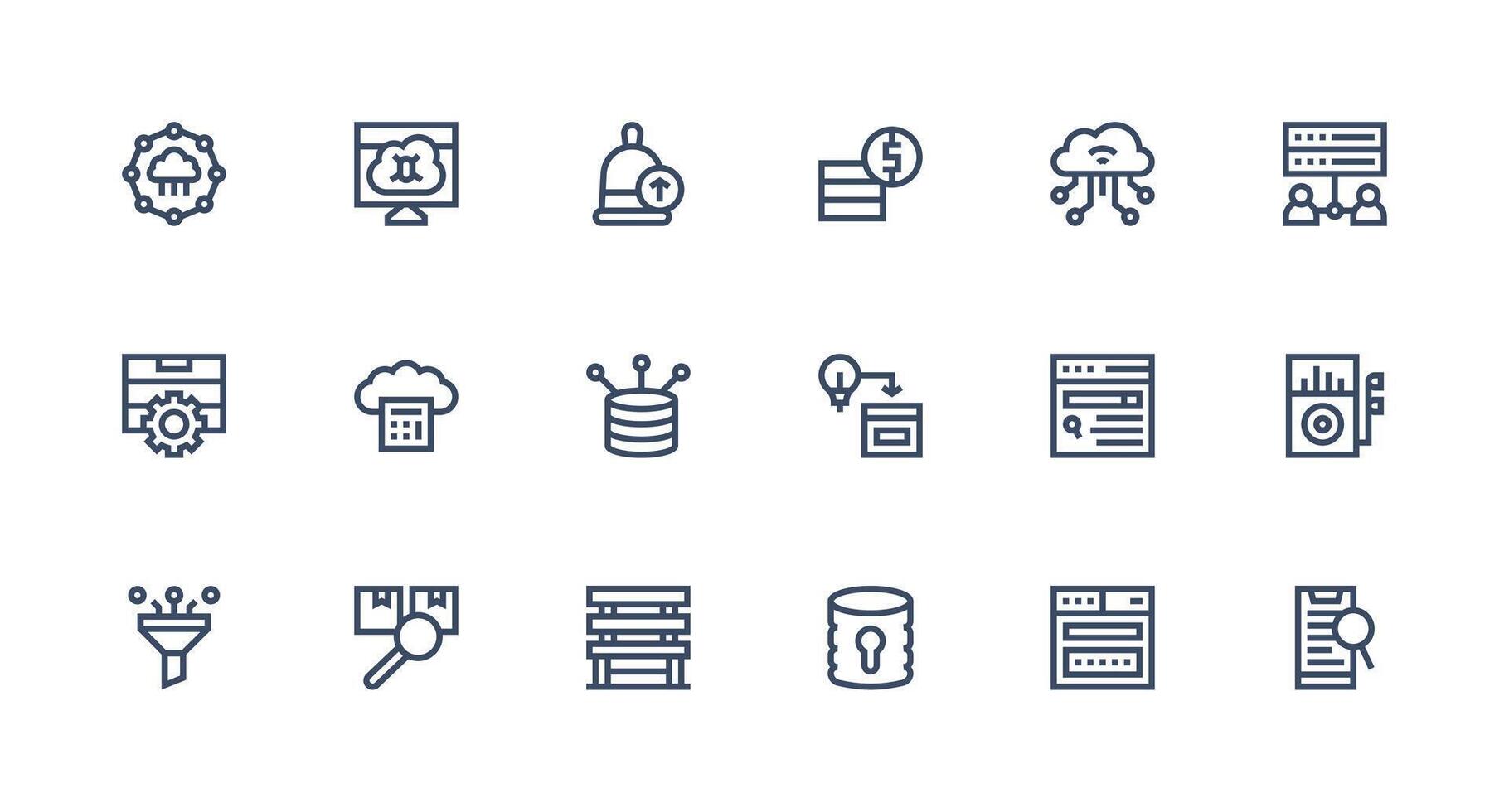 Database Icon Collection with 18 Strong Stroke Line Designs General Use Icon Pack vector