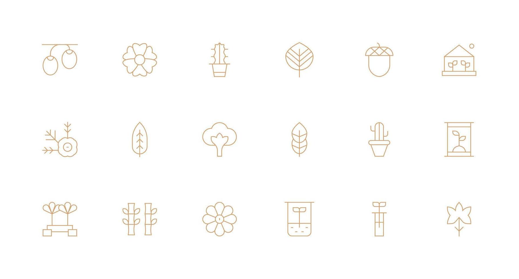 Botany Design Icons featuring 18 in Minimal Line Style Display Icon Pack Free Vector