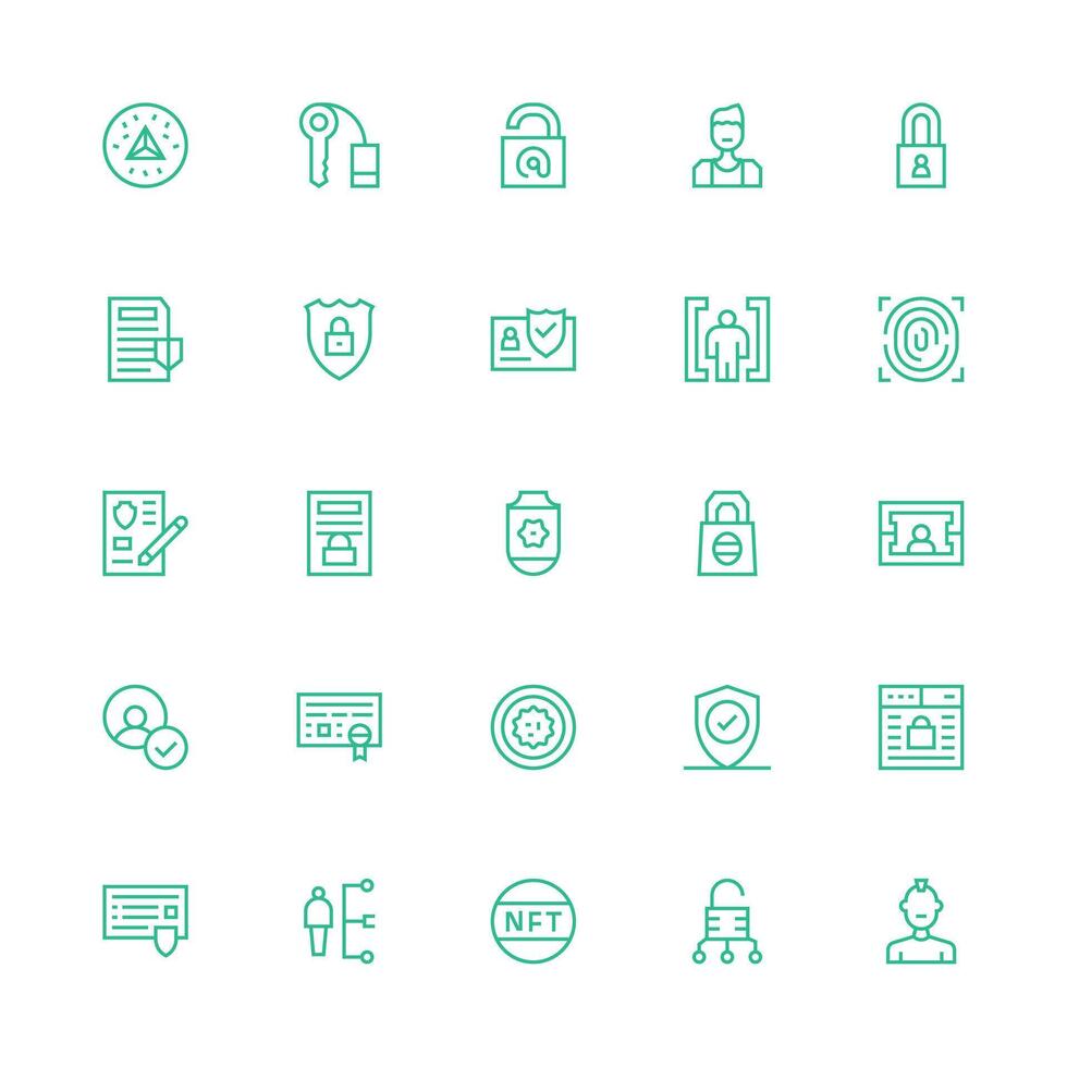 25 Medium Stroke Outline Icons for Authentication Graphics Neat Icon Set vector