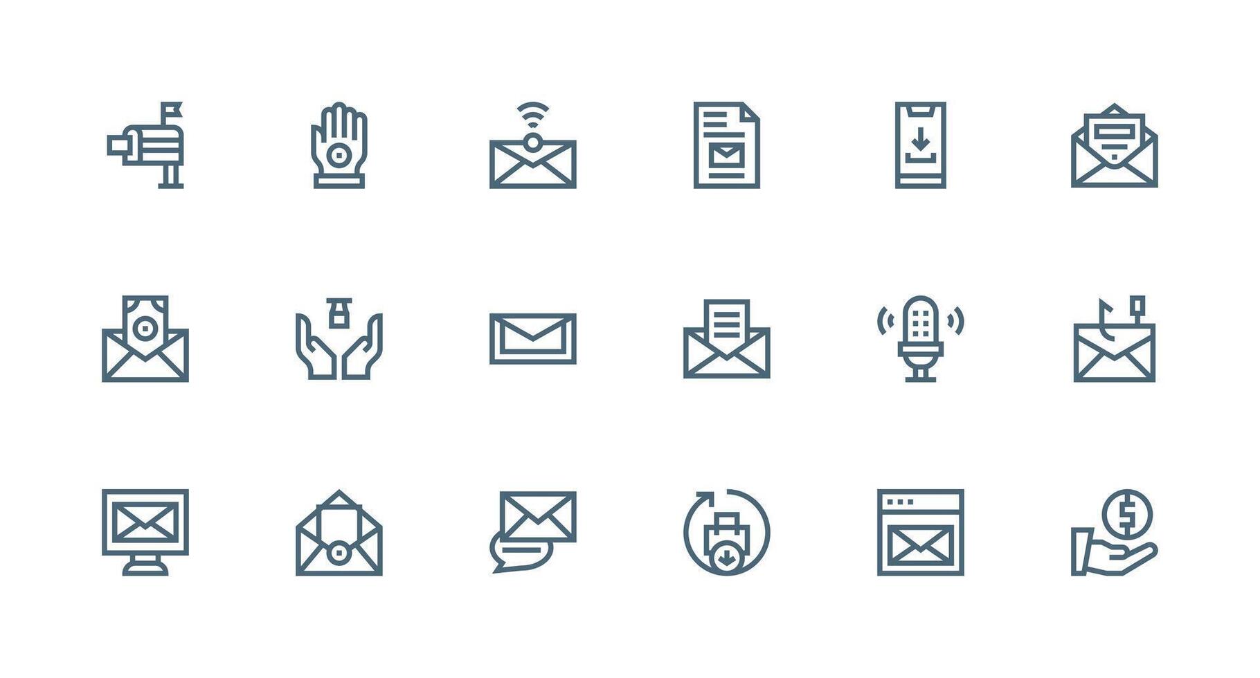 Receive Design Icons featuring 18 in Strong Stroke Line Style Neatly Designed Icons for Web Platforms vector