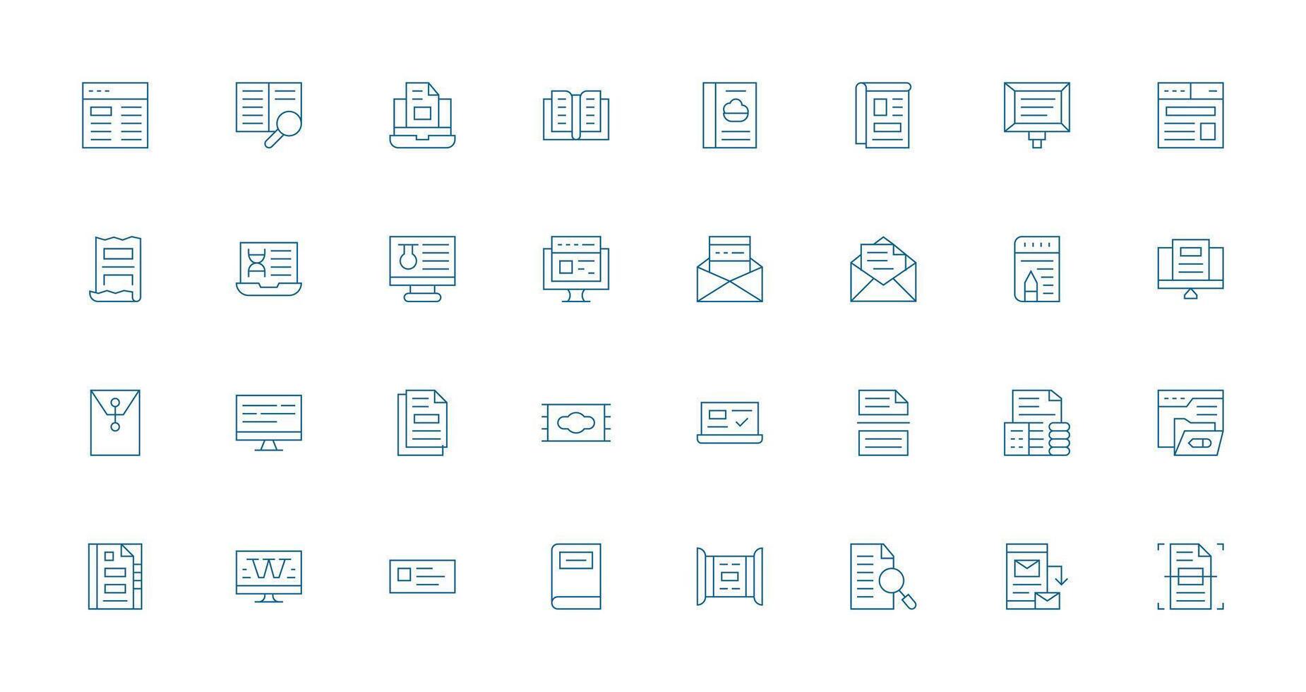 Thin Line Icons from Digital Document Set with 32 Vectors Essential Icon Collection Free Vector