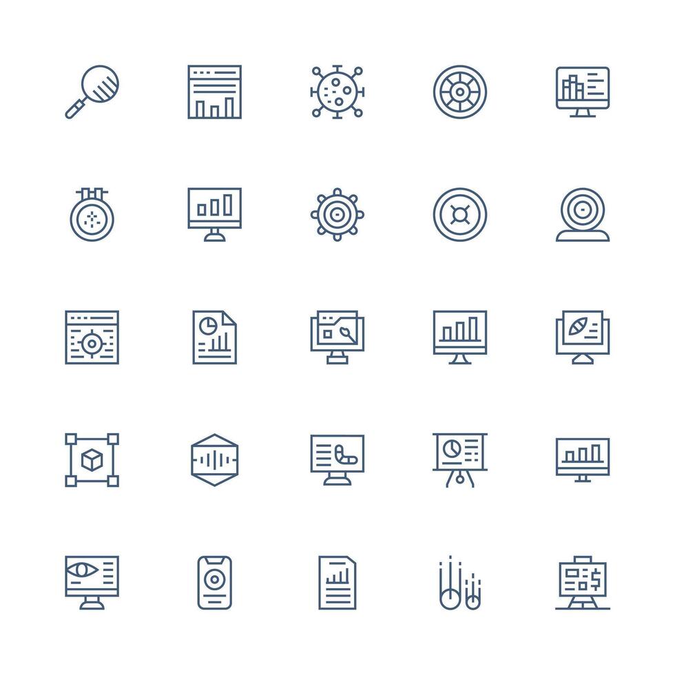 Visualization Set with 25 Medium Stroke Outline Icons Web Icon Collection Free Vector