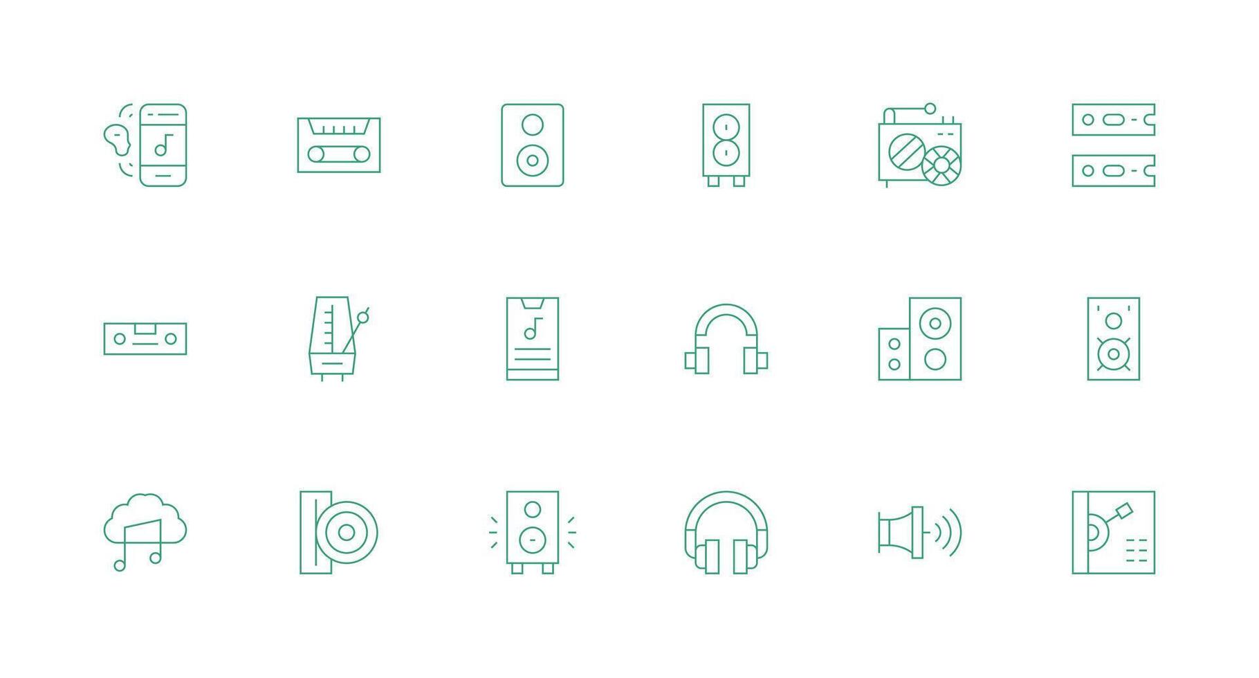 Music Player Icon Collection with 18 Minimal Line Designs High-Resolution Icons for Any Platform vector