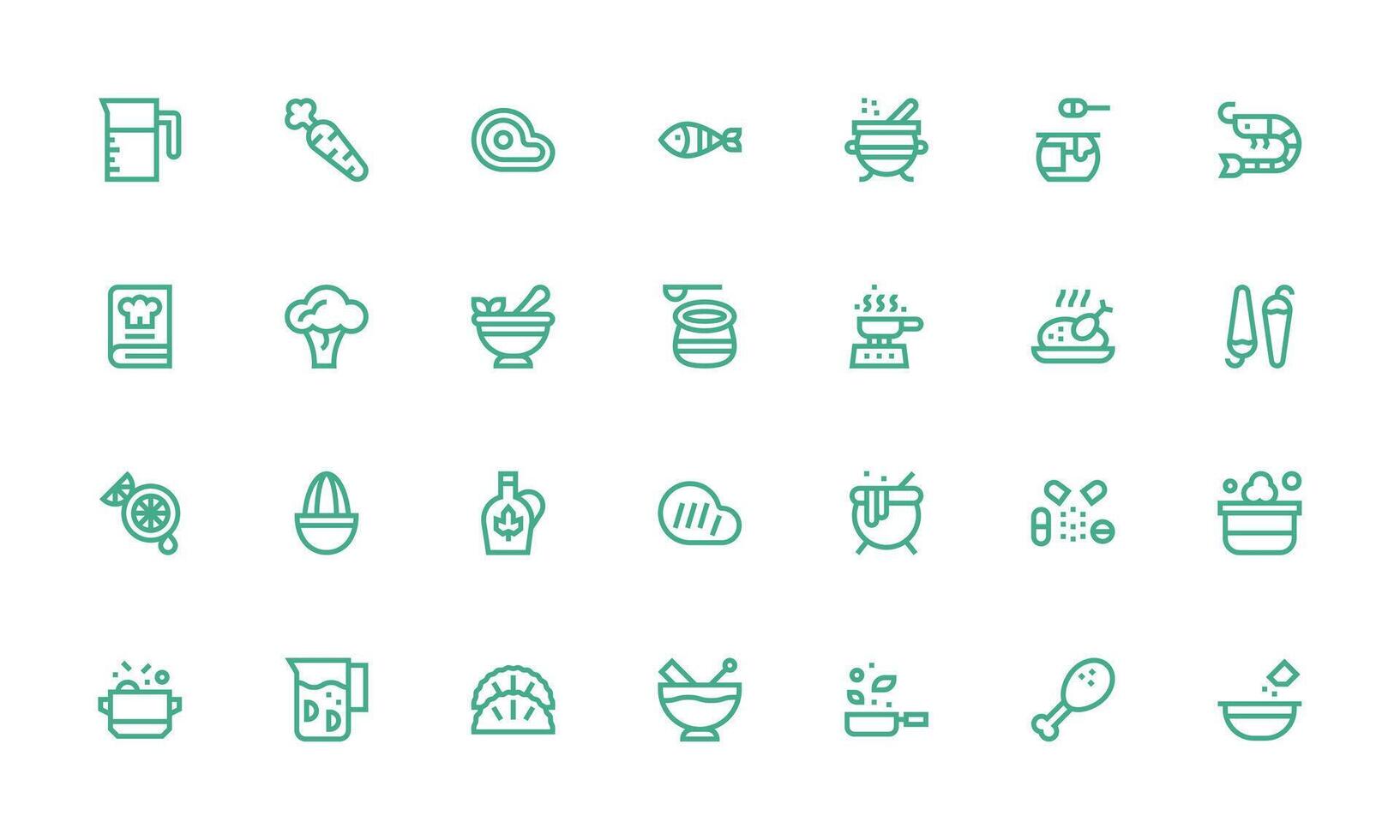 28 Bold Line Vectors for Recipe Theme Quick Access Icons for UI Development
