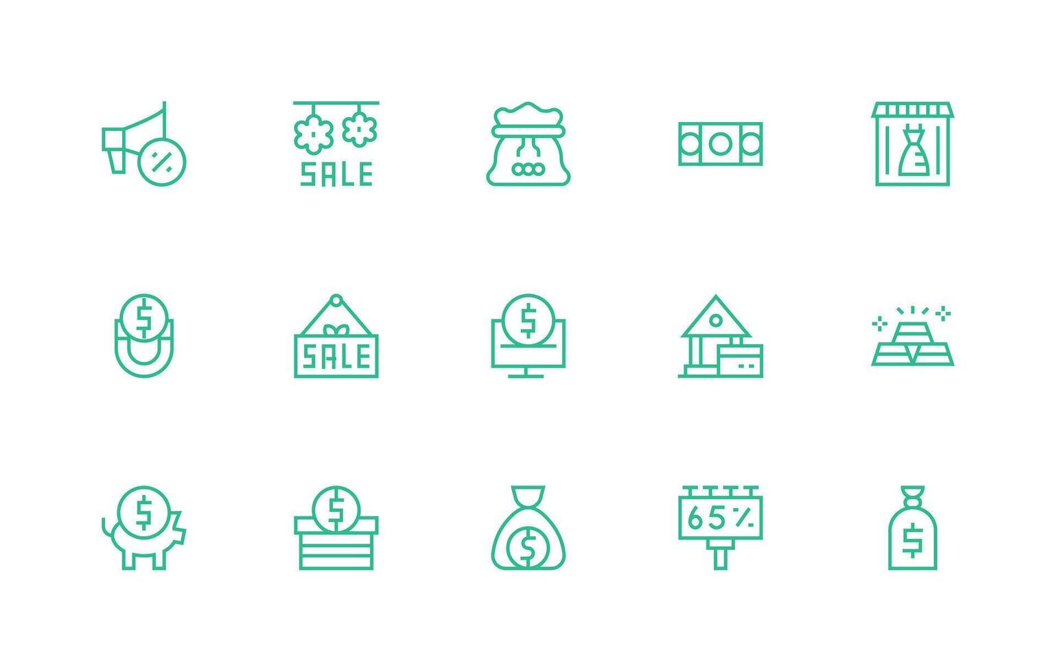 Savings Icon Set with 15 Regular Line Graphics Flat Icon Set vector