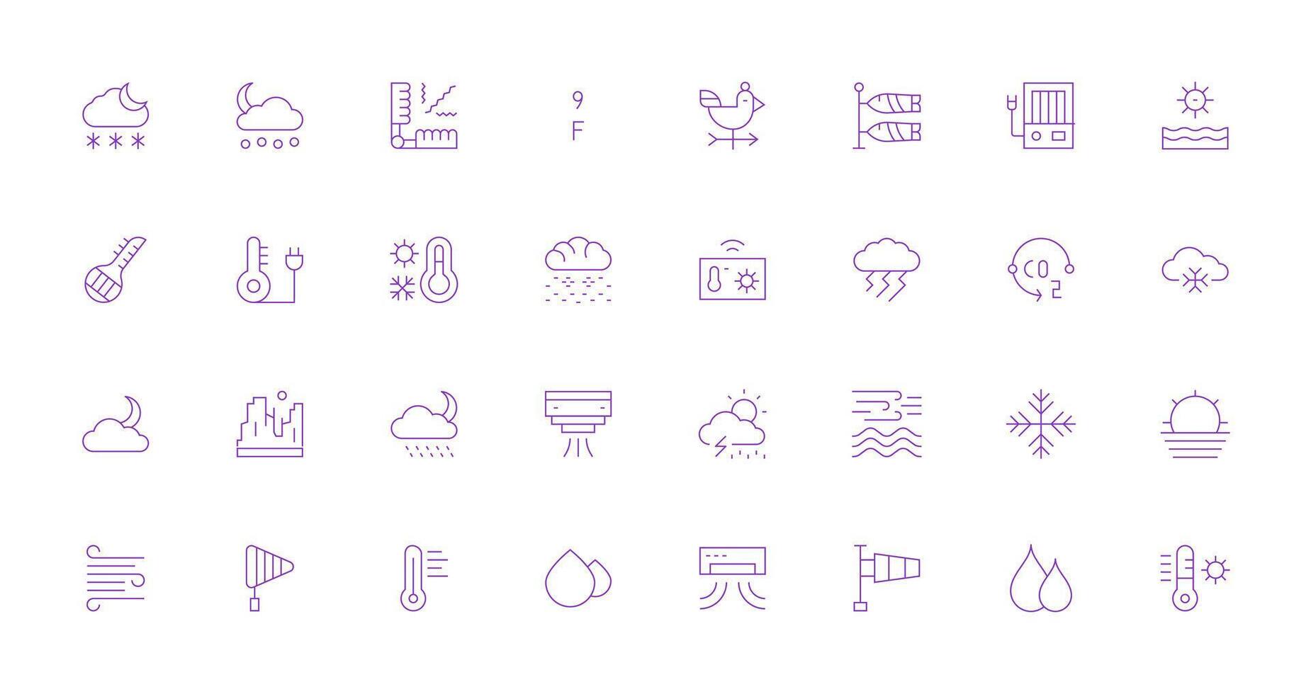 Climate Set with 32 Thin Line Icons Balanced Icon Set for Functional Design vector
