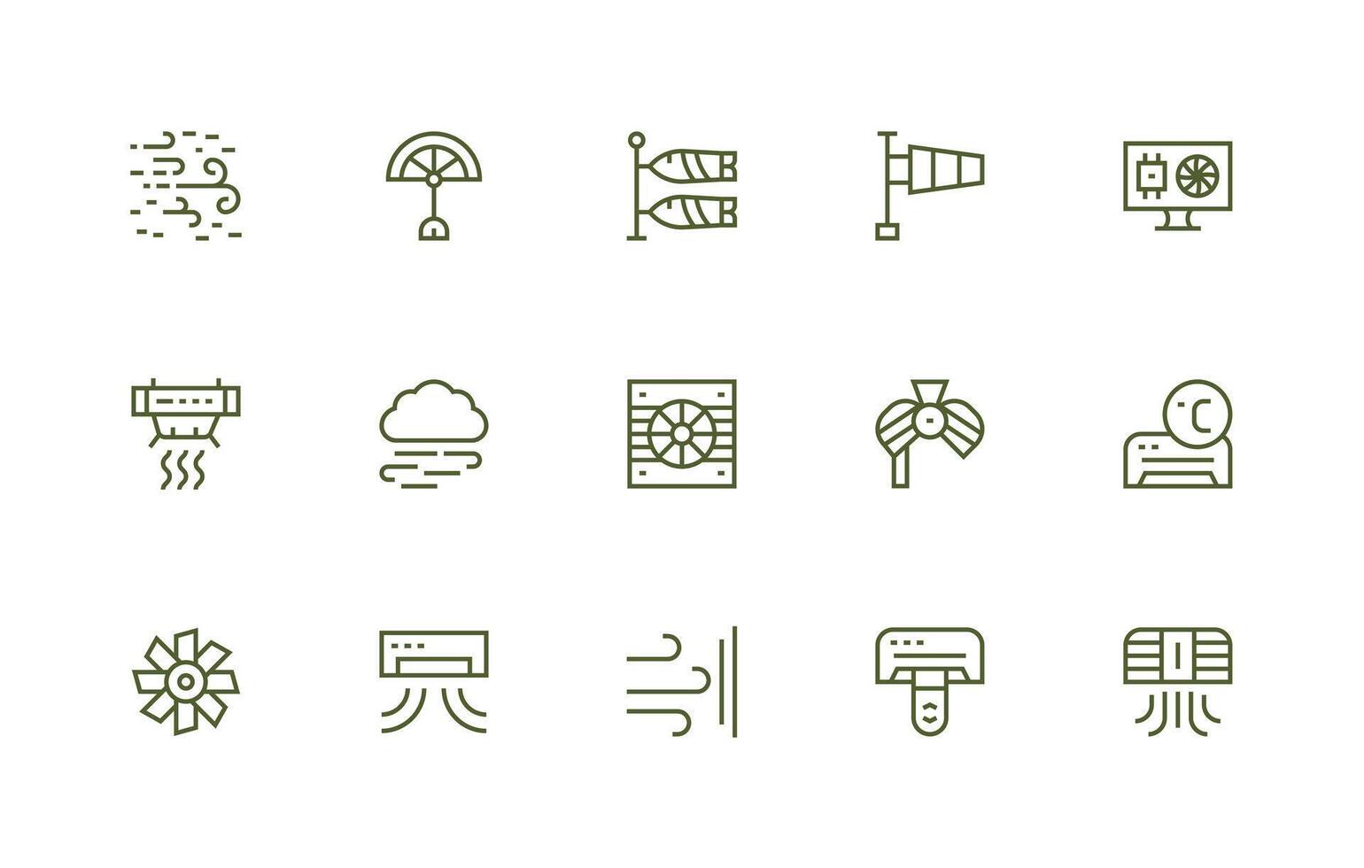 15 Regular Line Icons for Airflow Graphics Pixel Perfect Icon Set vector