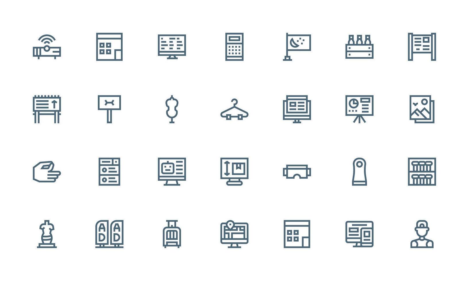 Display Set with 28 Bold Line Icons Scalable Icons for All Themes Free Vector