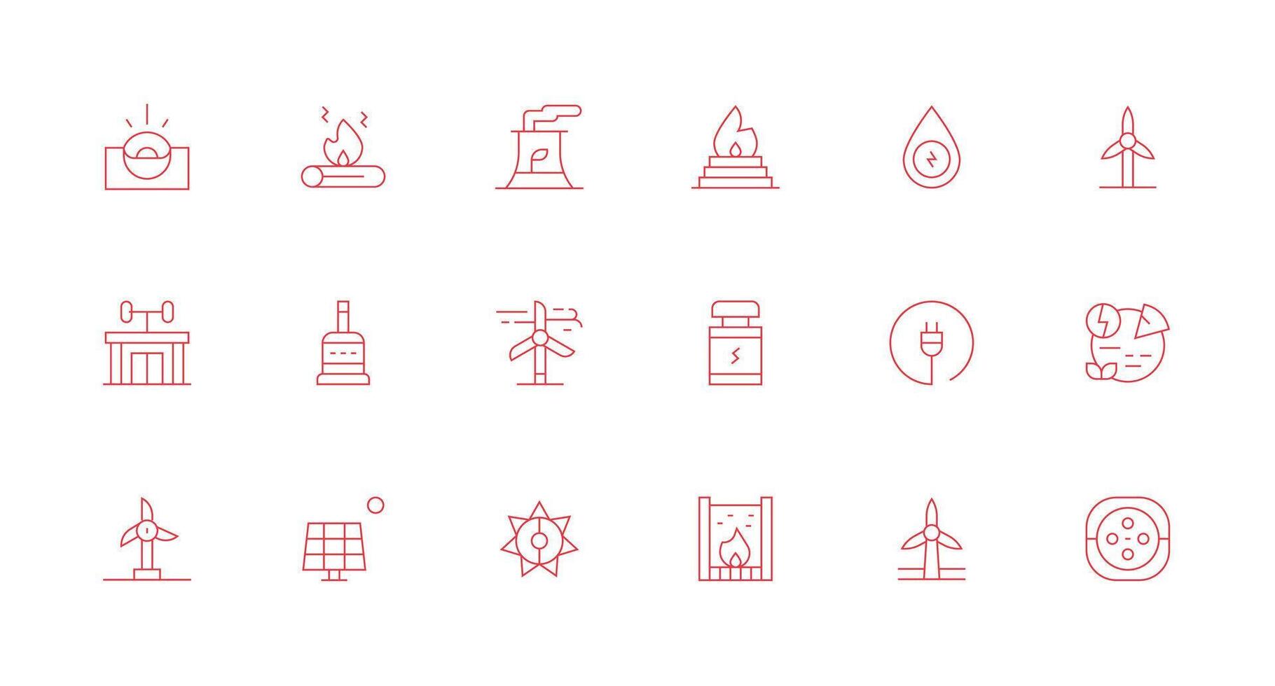 Minimal Line Icons from Energy Source Set with 18 Vectors Essential Icon Set for Teams