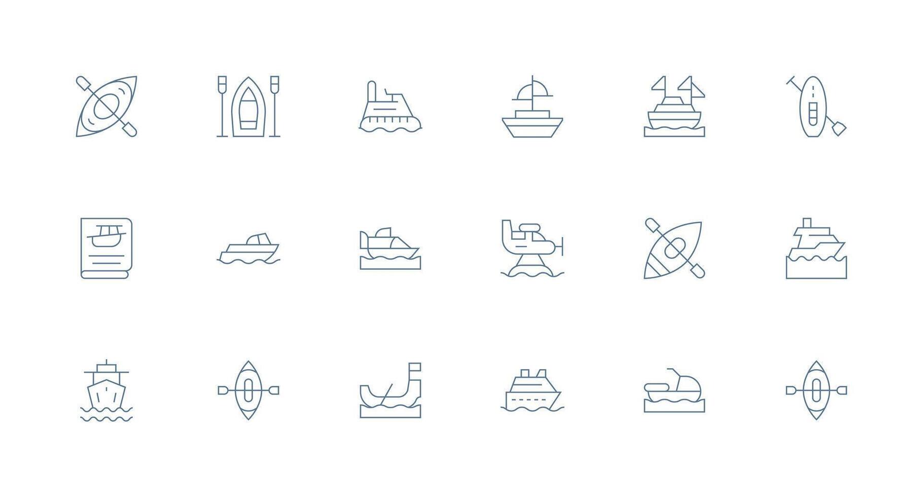 Watercraft Icon Set with 18 Minimal Line Graphics UI Icon Set vector