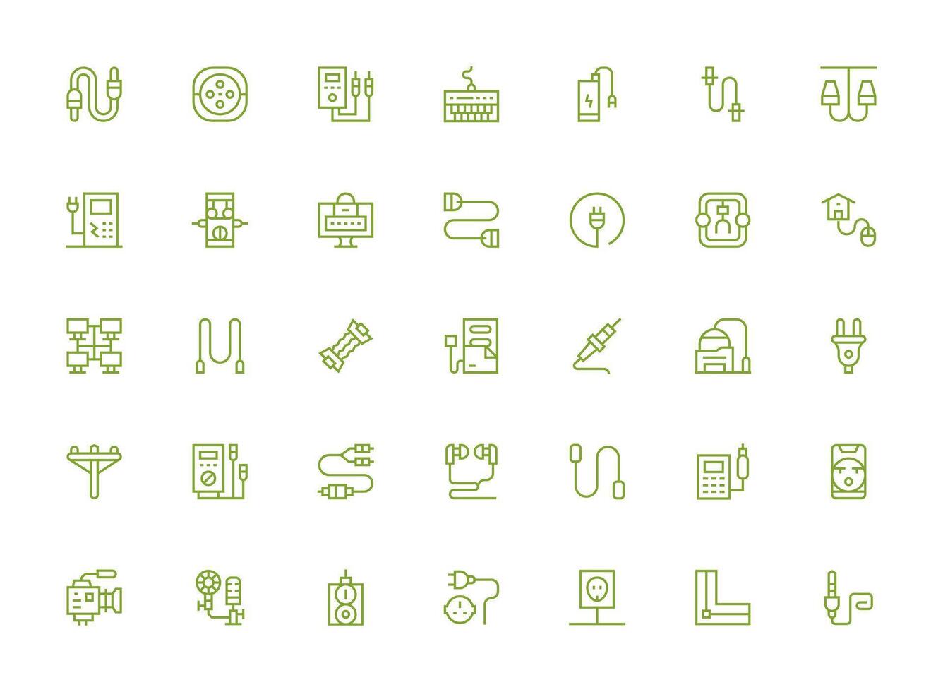 Cable Icon Set with 35 Regular Clean Line Graphics Flexible Icon System for Web Interfaces vector