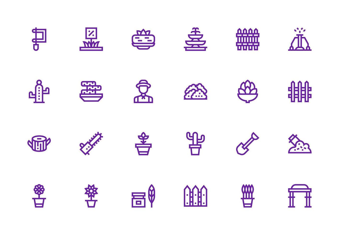 24 Icons for Landscaping in Thick Line Line Format Scalable Icons for Cross-Platform Interfaces vector