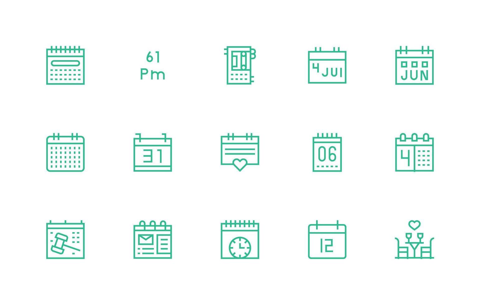 Date including 15 Regular Line Illustrations Clean Icon Collection for Web Use vector