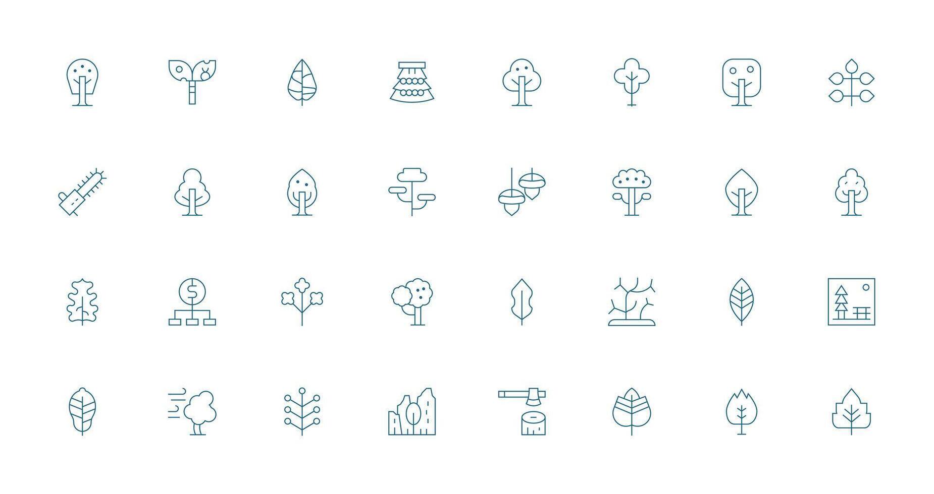 Tree featuring 32 Icons in Thin Line Design Essential Icon Collection Free Vector