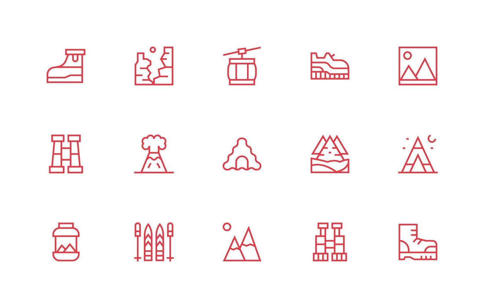 15 Icons for Mountain in Regular Line Format Web Icon Collection vector