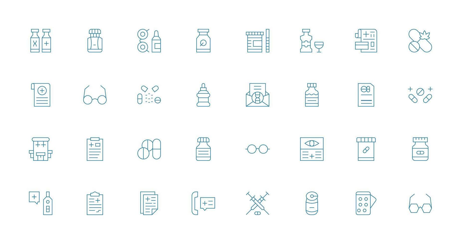 32 Icons for Prescription in Thin Line Format Clean Icon Collection for Web Use vector