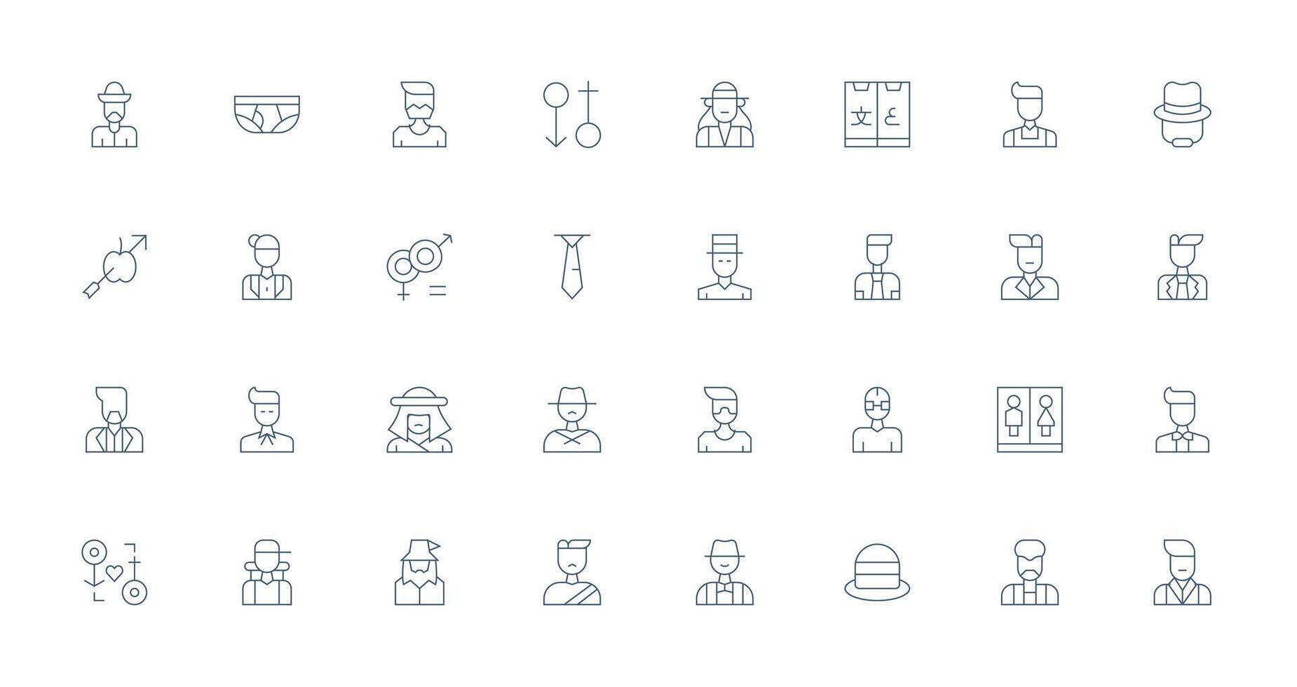 Male Icon Set with 32 Thin Line Graphics Core Icon Collection for Daily Tasks Free Vector