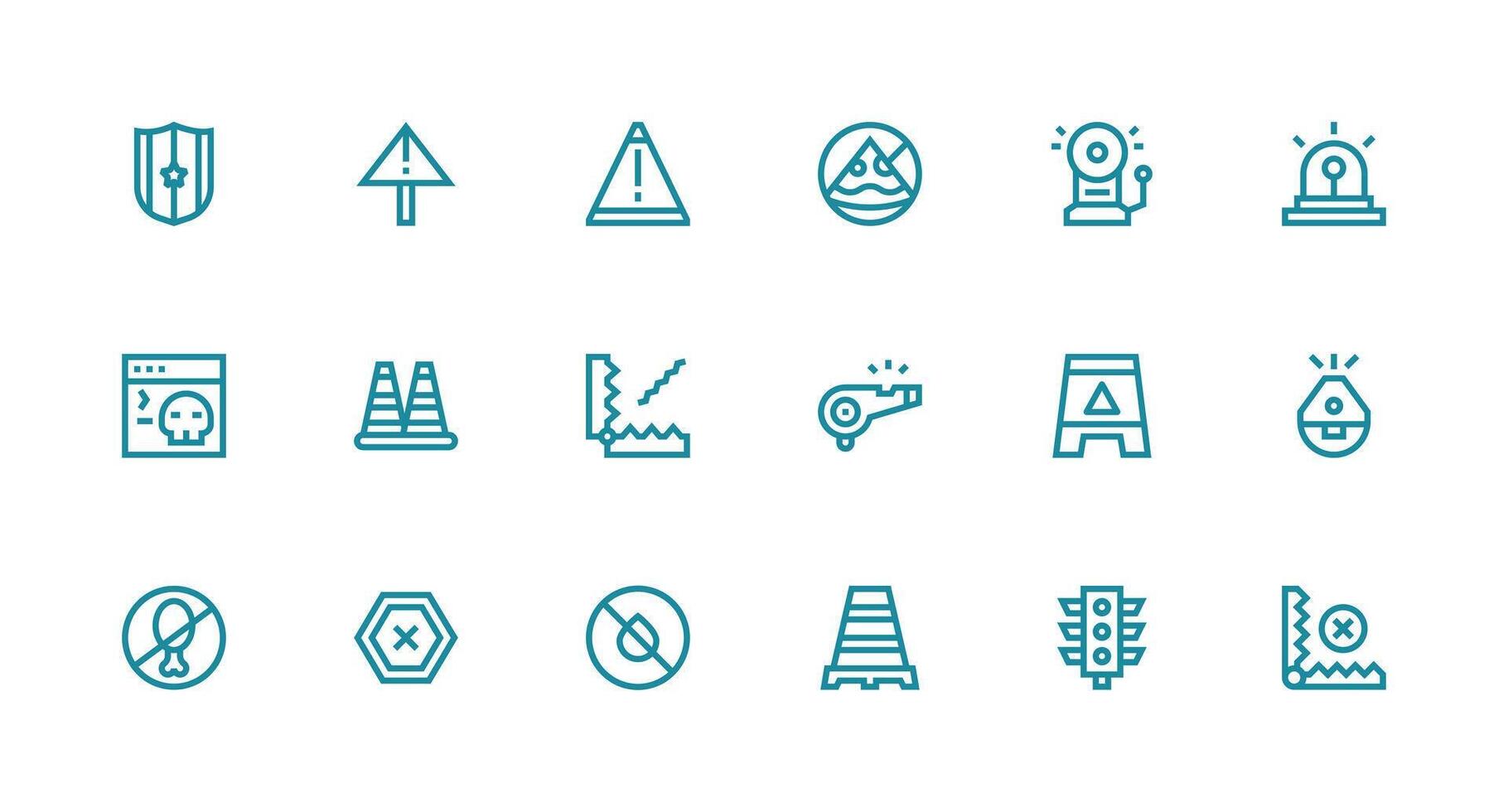 Caution Design Icons featuring 18 in Strong Stroke Line Style Clean Icon Collection for Web Use vector