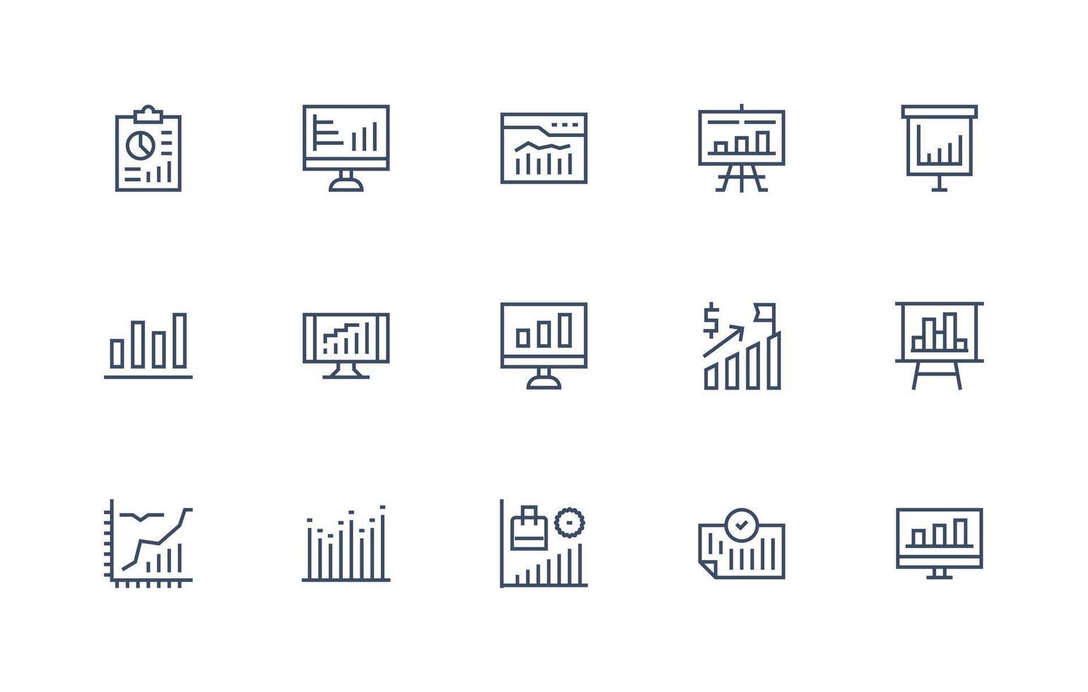 Bar Chart featuring 15 Icons in Regular Line Design Dashboard Icon Series vector