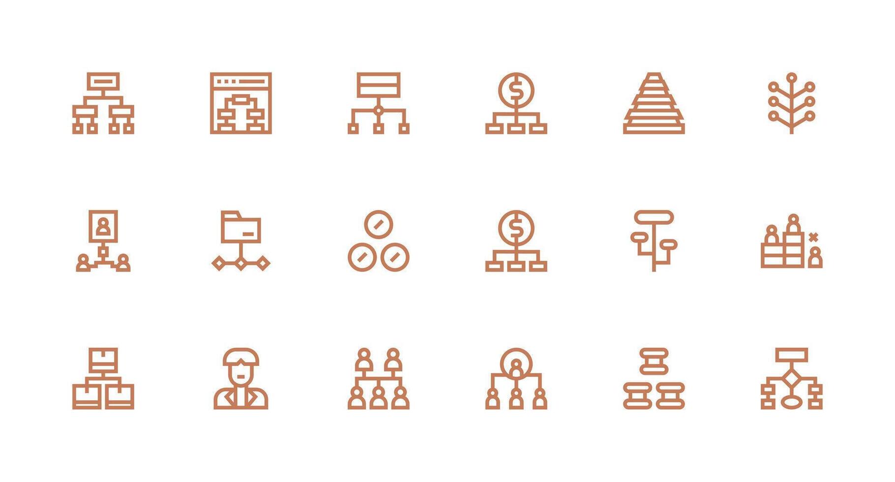 Hierarchy Visual Pack containing 18 Strong Stroke Line Icons Dashboard Icon Series vector