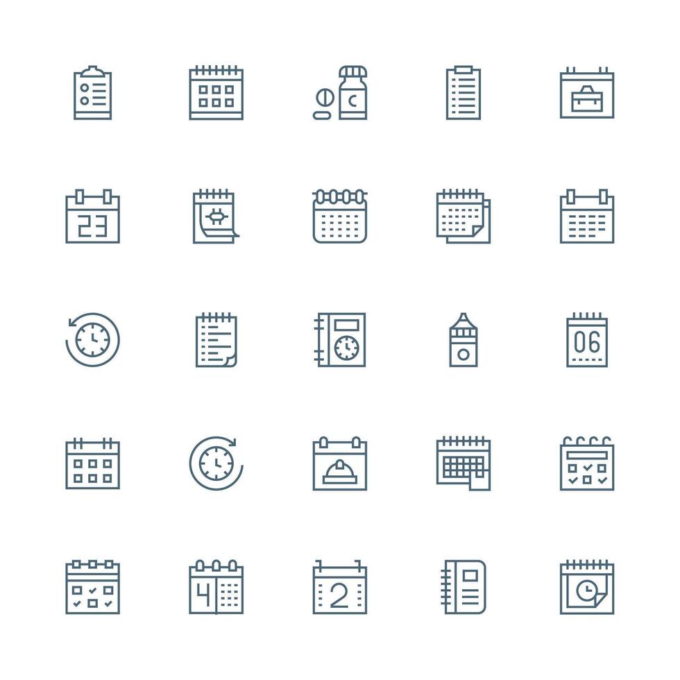 Daily Icon Set with 25 Medium Stroke Outline Graphics Dashboard Icon Series vector