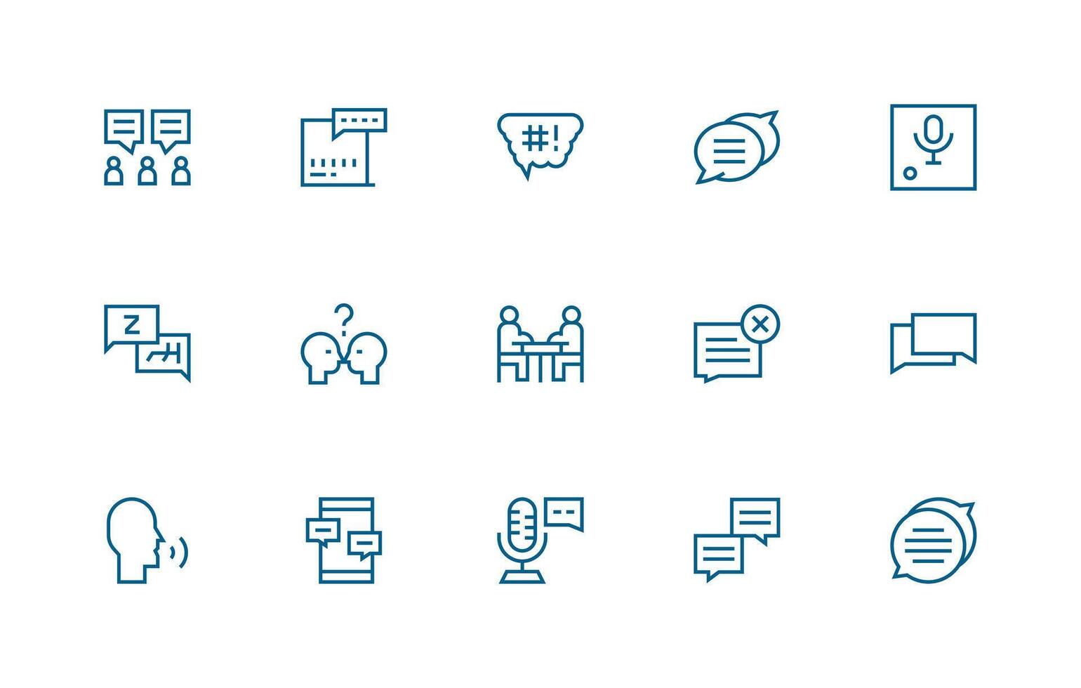 Conversation featuring 15 Icons in Regular Line Design Multi-Style Icons for Creative Projects vector