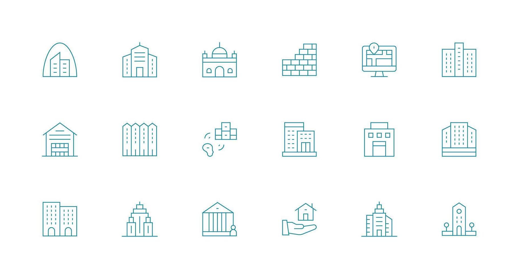 Minimal Line Icons from Property Set with 18 Vectors Flat Icon Set Free Vector