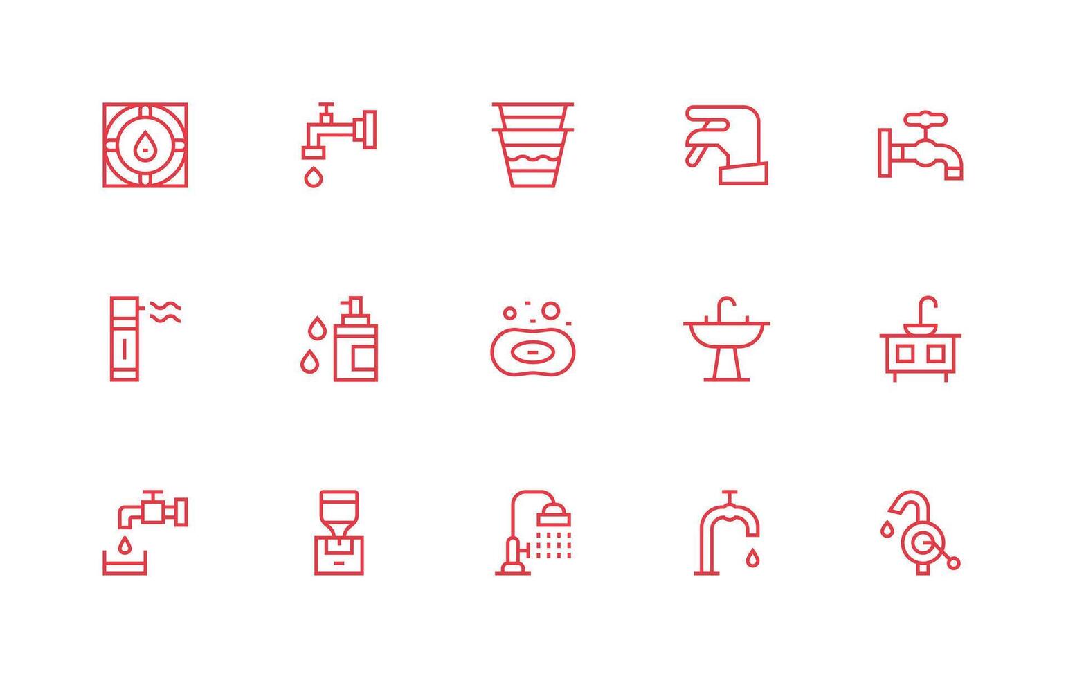 15 Icons for Faucet in Regular Line Format Functional Icon Series vector