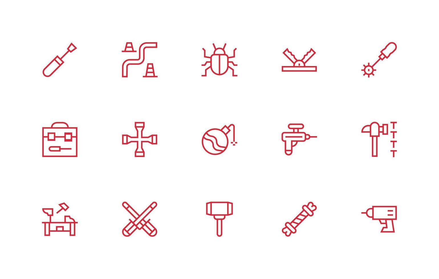 Repairing Visual Pack containing 15 Regular Line Icons Clear and Concise Icon Set Collection vector