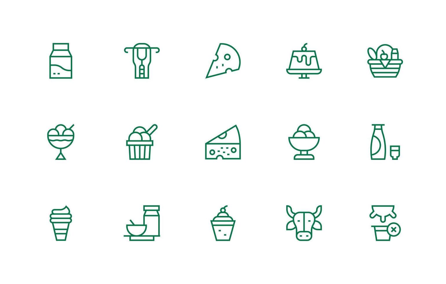 Regular Line Style Dairy Icons with 15 Vectors Complete Icon Set for Mobile Apps Free Vector