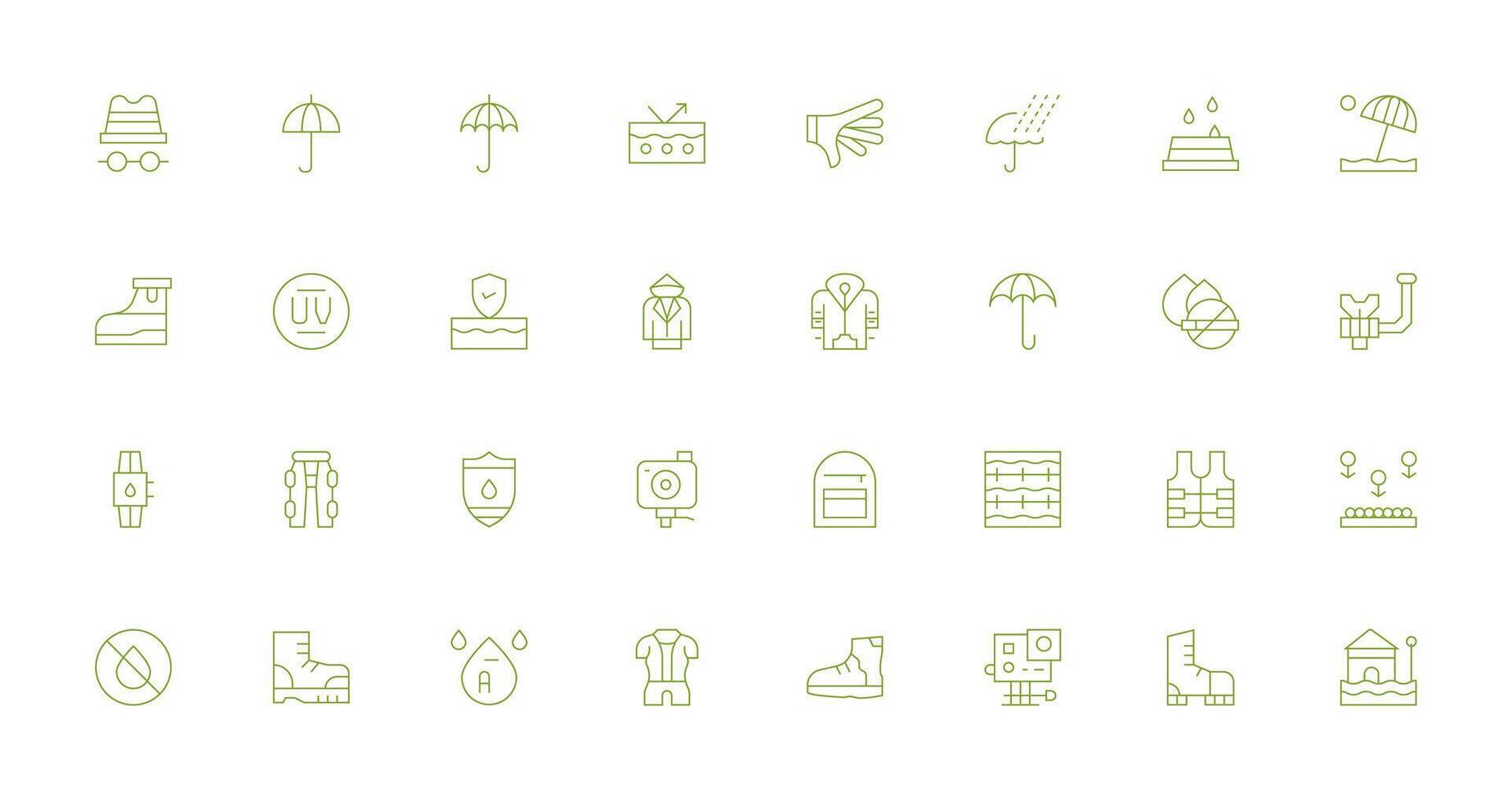 32 Icons for Waterproof in Thin Line Format Scalable Icons for All Themes vector