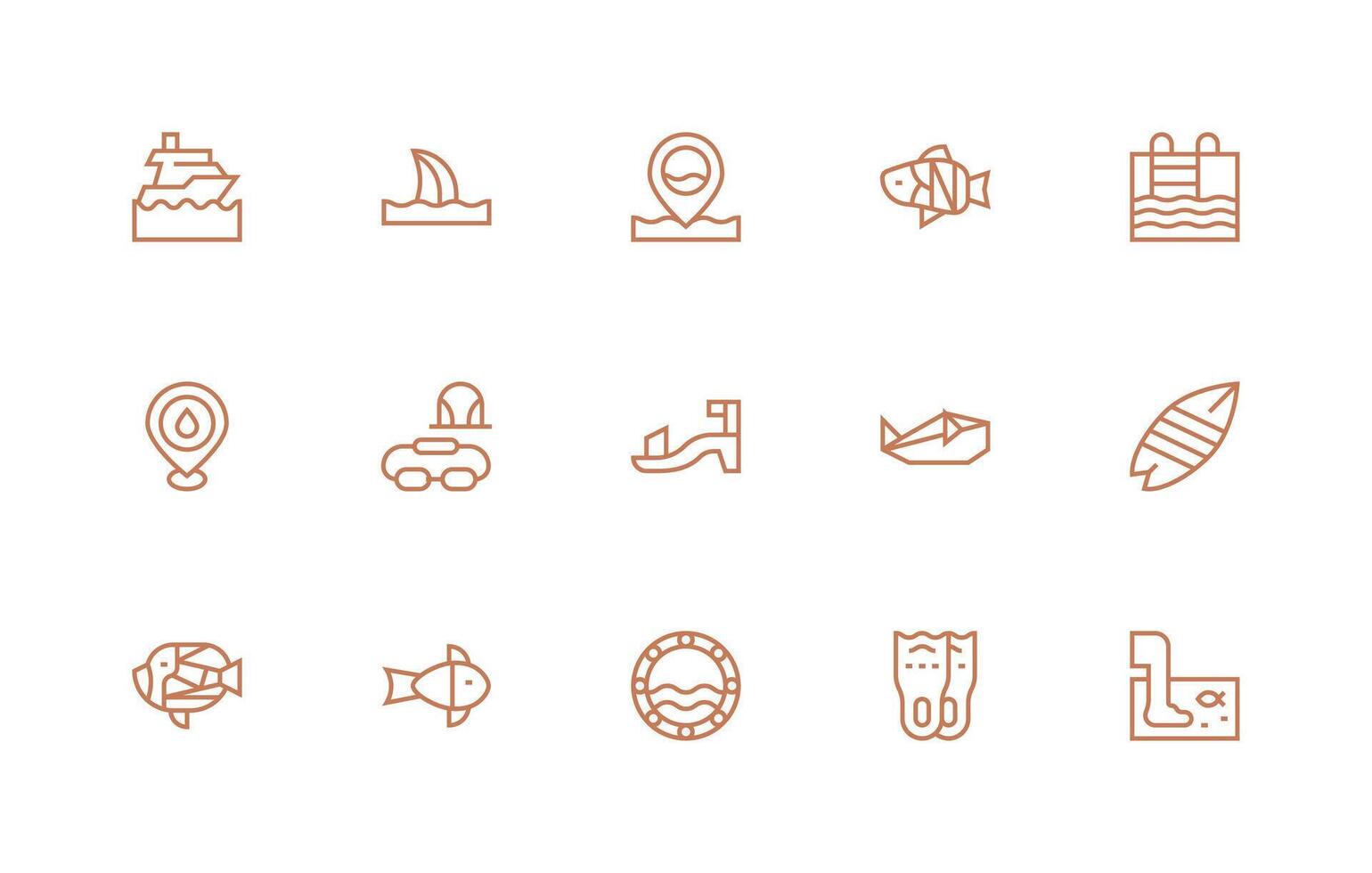 Aquatic Icon Set with 15 Regular Line Graphics Functional Icon Series vector