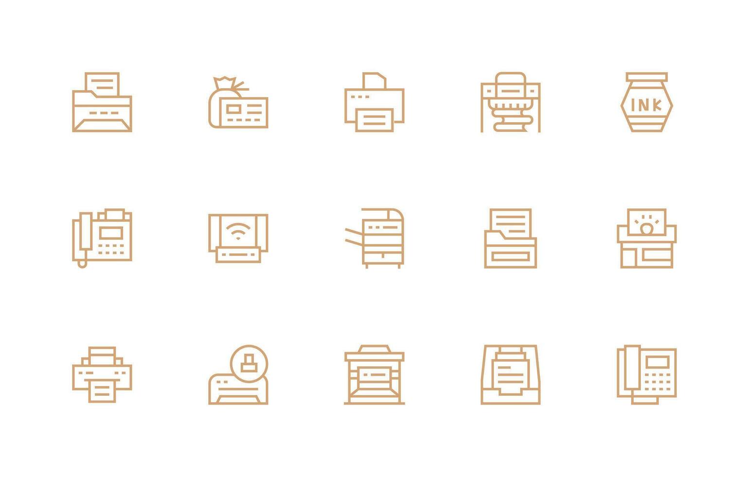 15 Icons for Printer in Regular Line Format Icon Set for Apps vector