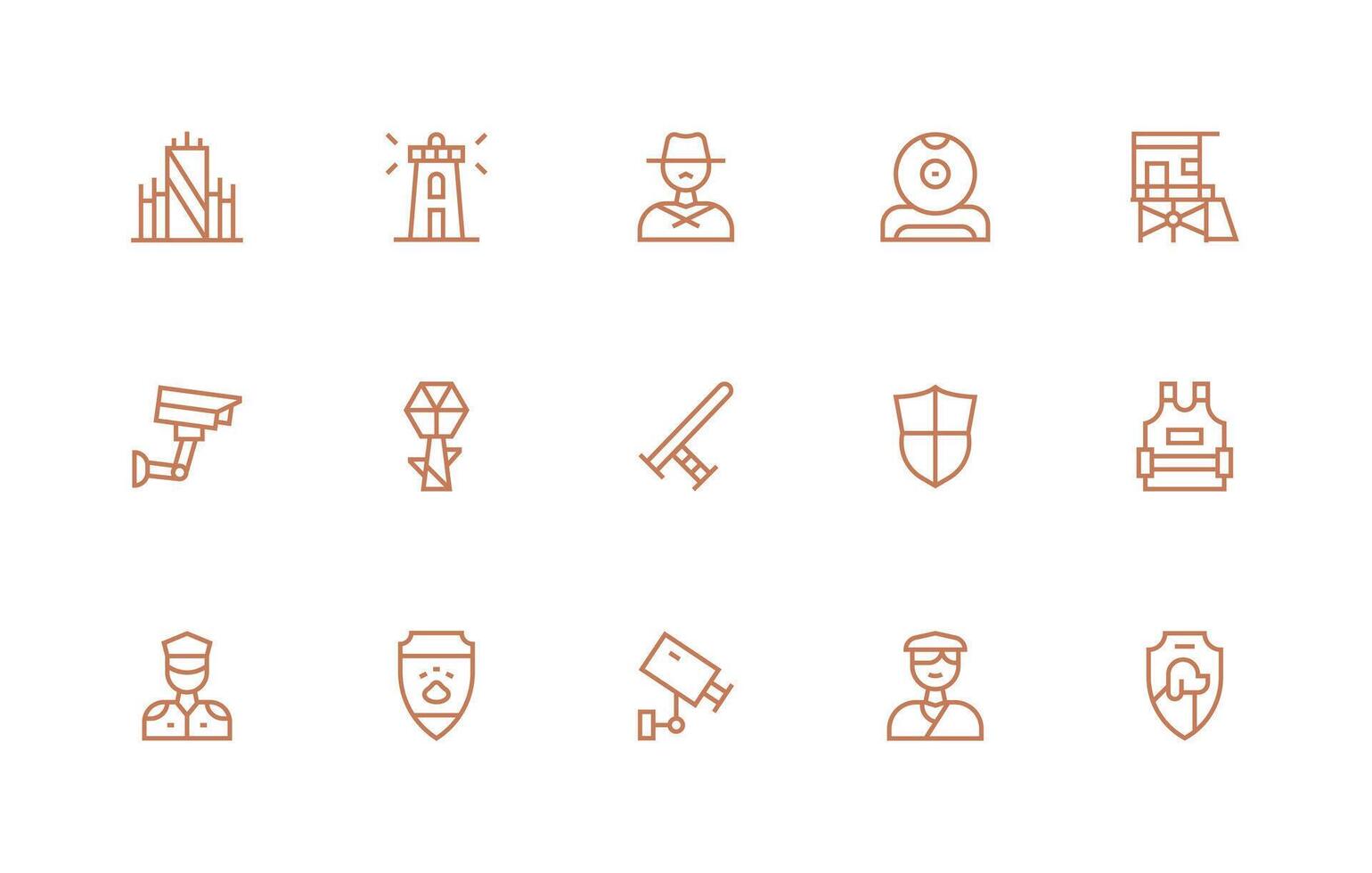 Guard Visual Pack containing 15 Regular Line Icons Balanced Icon Set for Functional Design vector