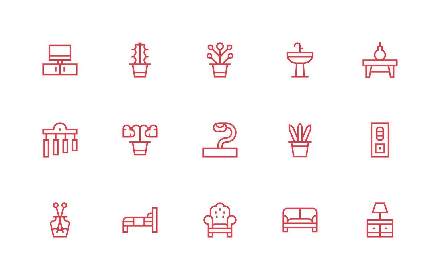 Regular Line Icons from Interior Design Set with 15 Vectors Neatly Designed Icons for Web Platforms