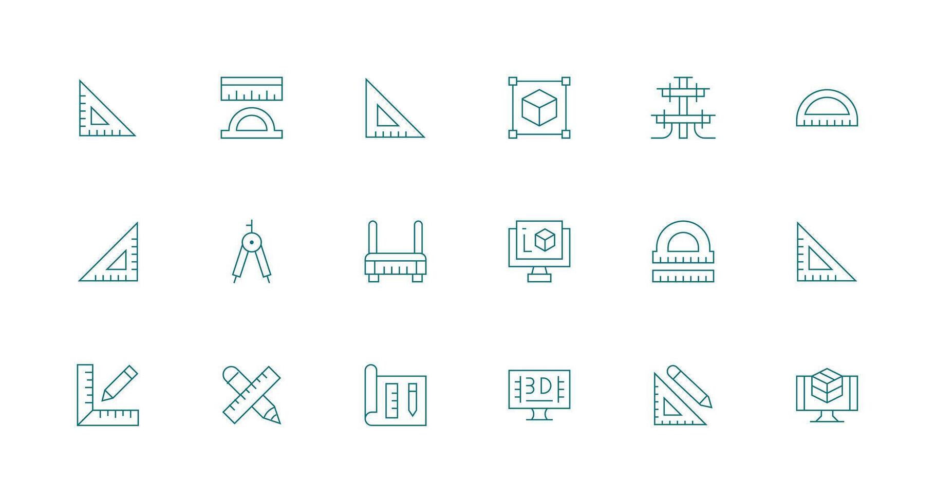 Cad Icon Set with 18 Minimal Line Graphics Flexible Icon System for Web Interfaces Free Vector