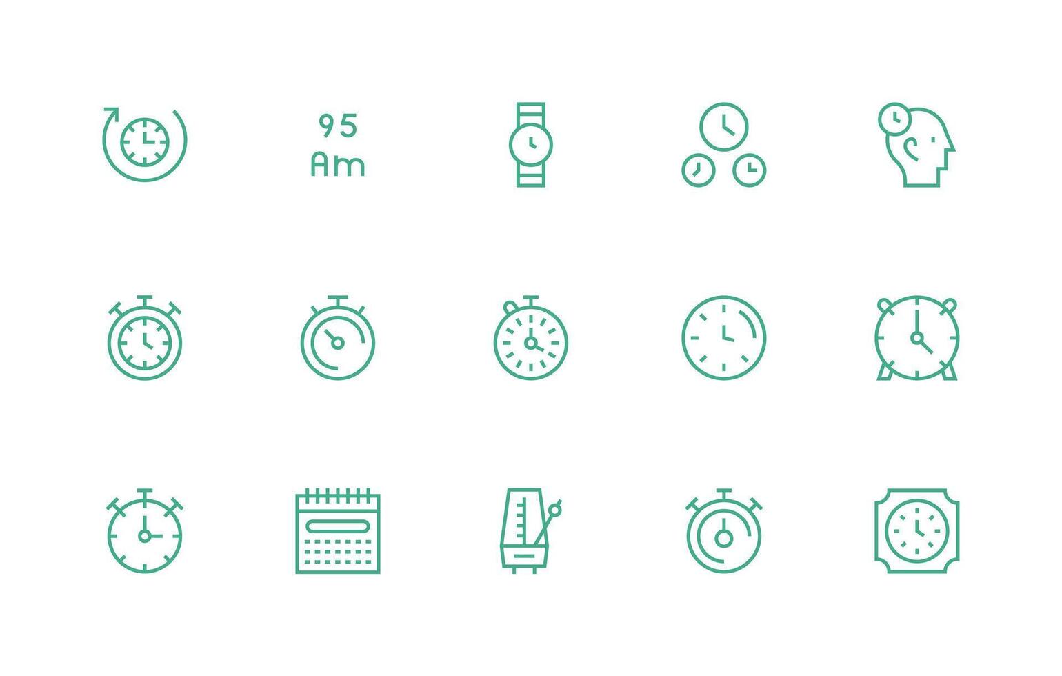 15 Regular Line Vectors for Timekeeping Theme Essential Icons for Rapid UI Building