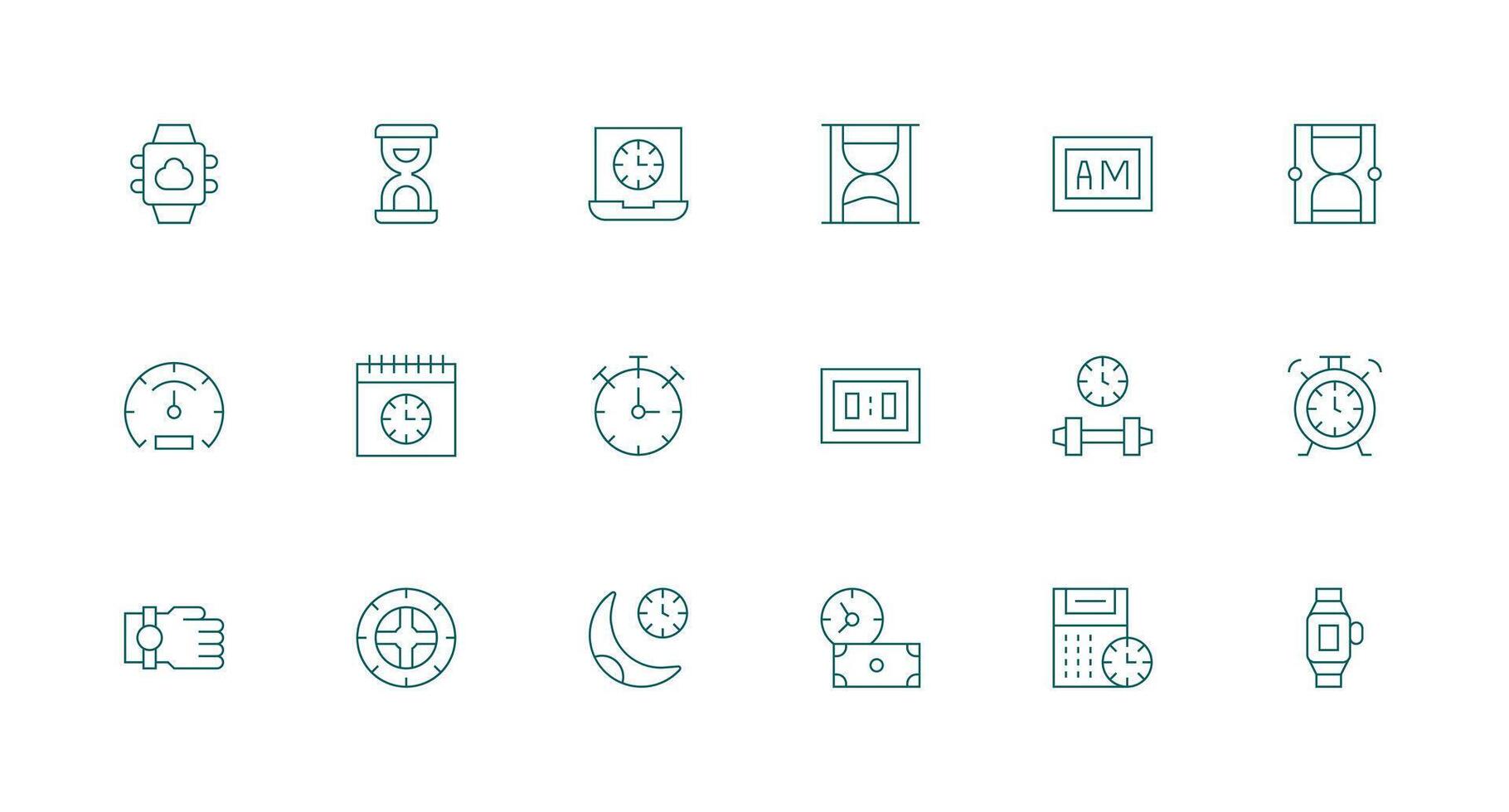 Clock Set with 18 Minimal Line Icons Quick Access Icons for UI Development Free Vector