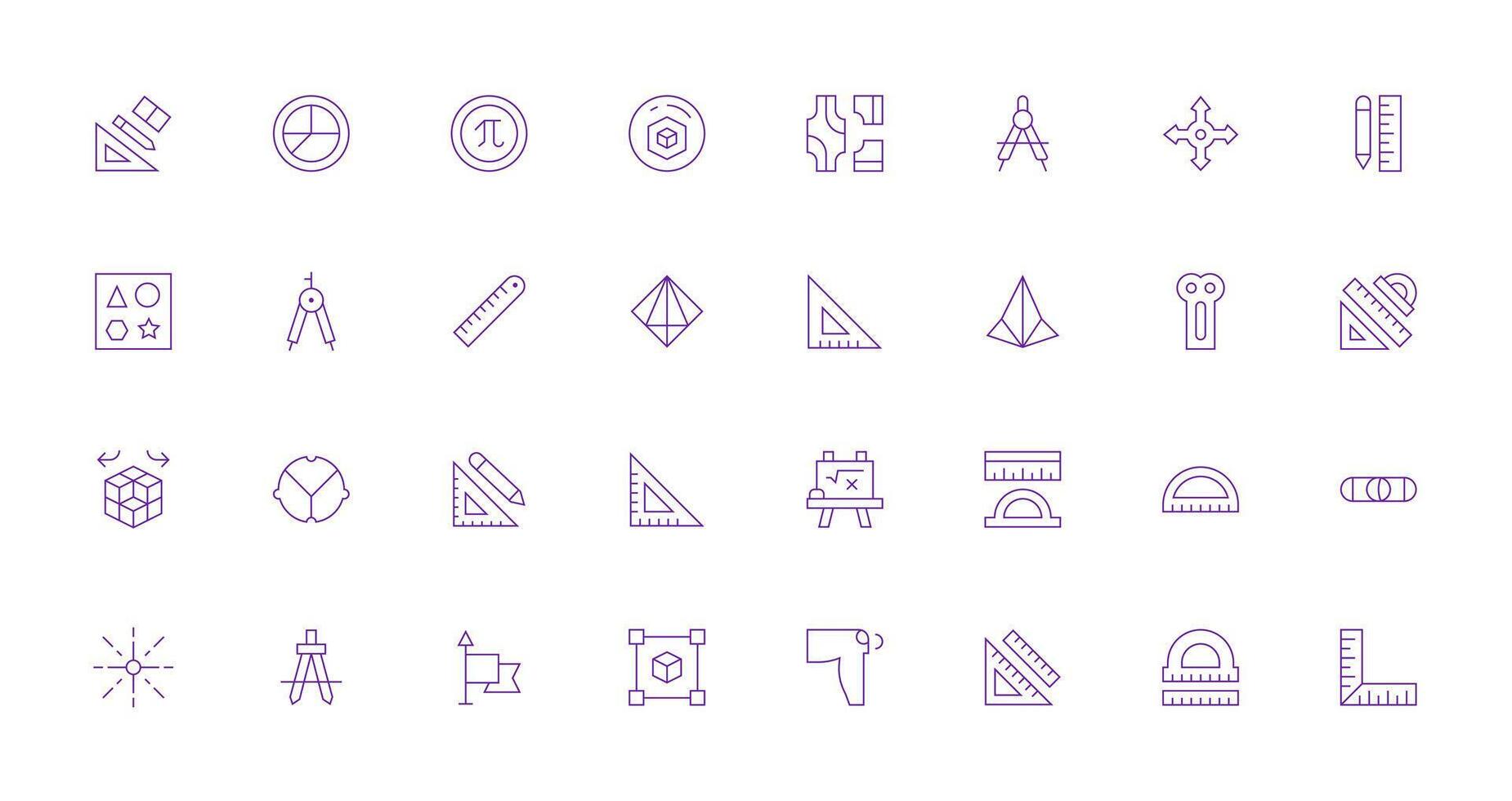 Geometry Icon Set with 32 Thin Line Graphics General Use Icon Pack Free Vector