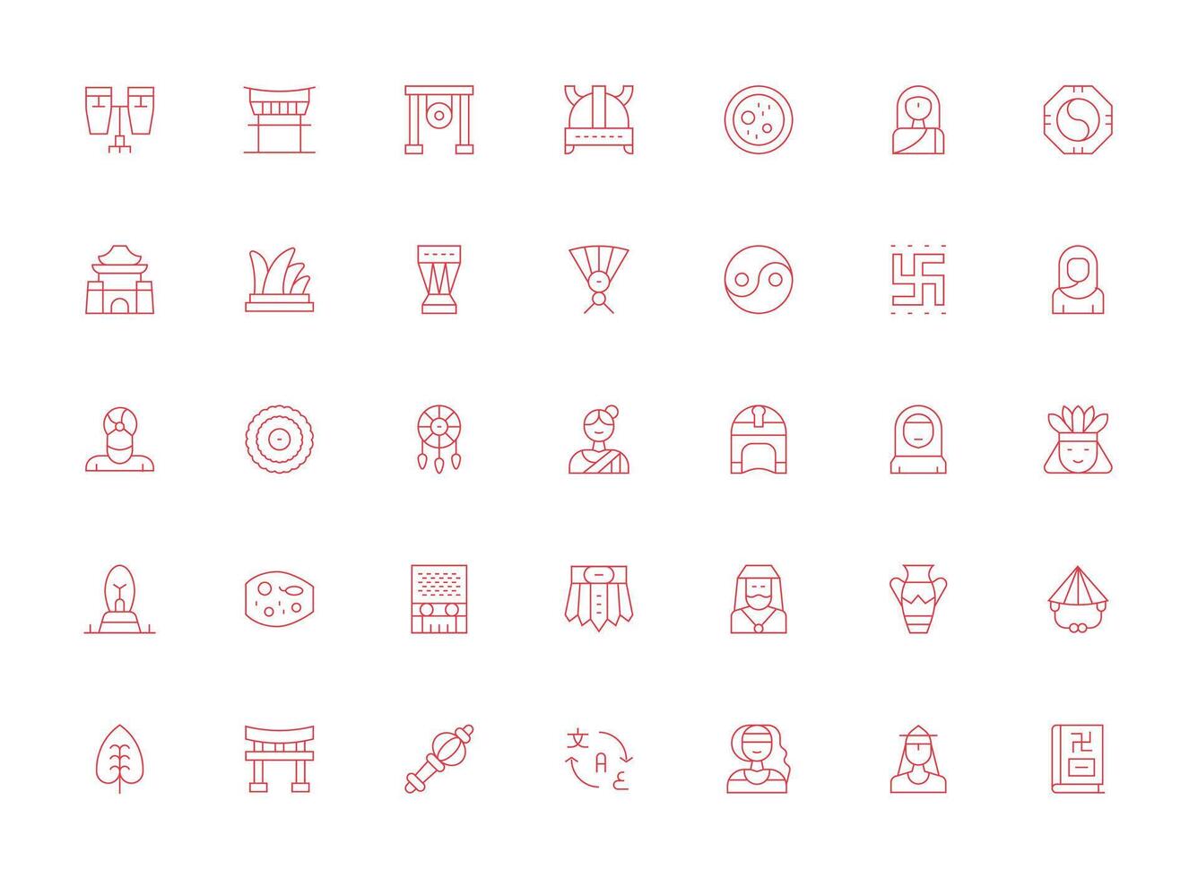 35 Icons for Culture in Light Line Format Icons Built for Visual Consistency Pack vector