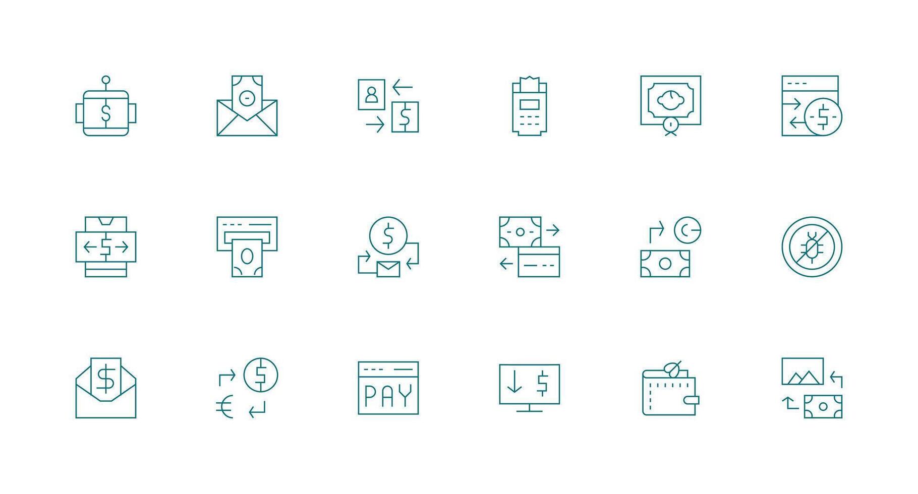 Financial Transaction Icon Collection with 18 Minimal Line Designs Scalable Icons for Cross-Platform Interfaces vector