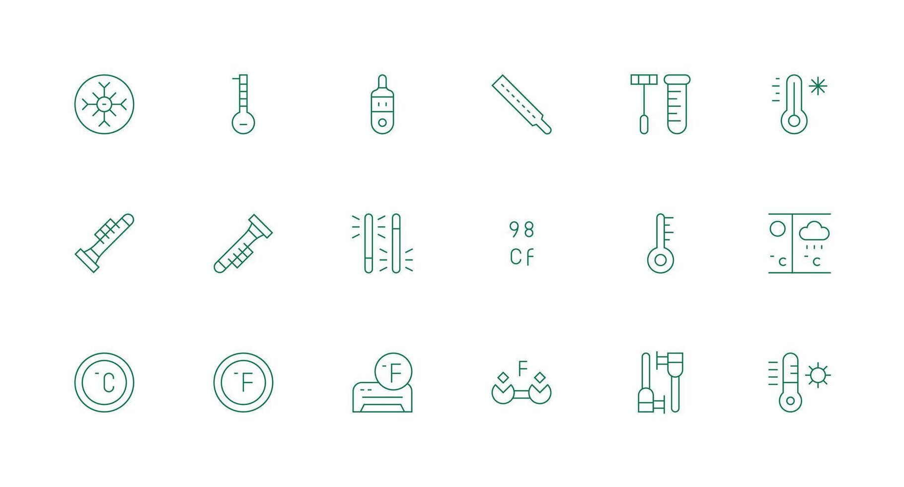 Fahrenheit Design Icons featuring 18 in Minimal Line Style Neat Icon Set Free Vector