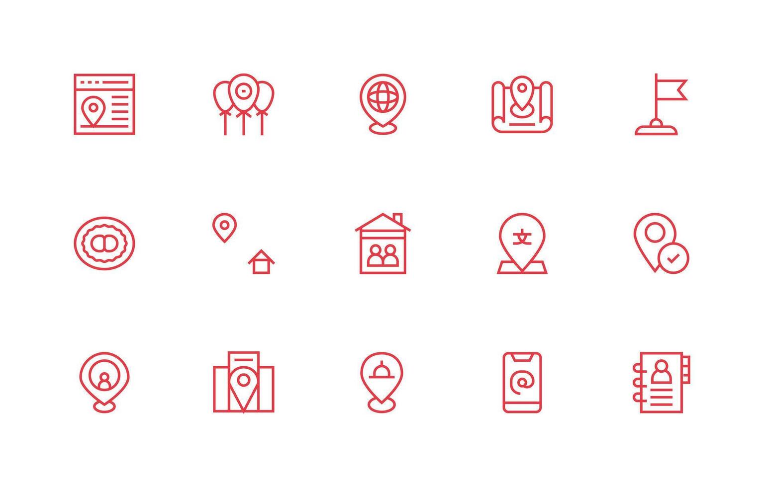 Address Icon Set with 15 Regular Line Graphics Outline Icon Pack vector