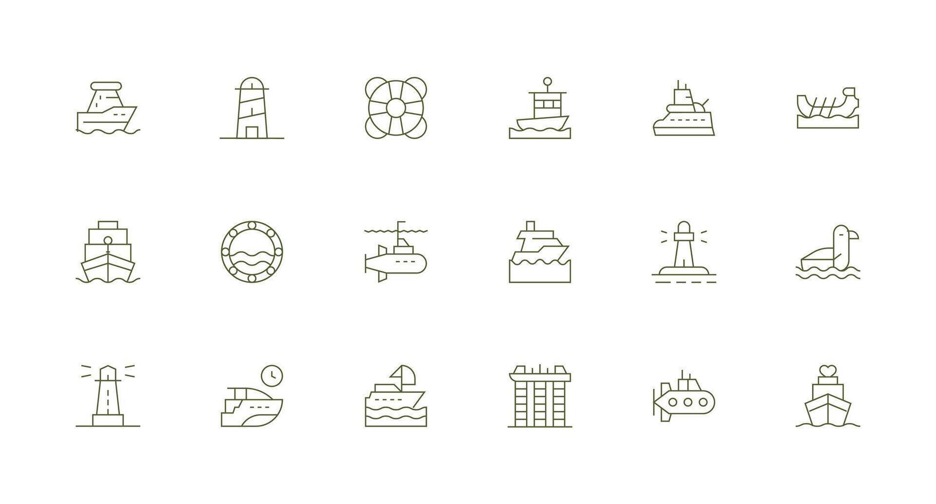 18 Minimal Line Icons for Ship Graphics Multi-Purpose Icon Set Free Vector