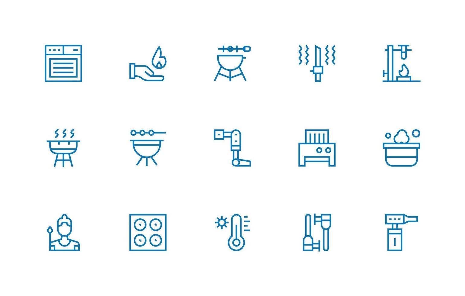 Regular Line Style Heat Icons with 15 Vectors Balanced Icon Set for Functional Design
