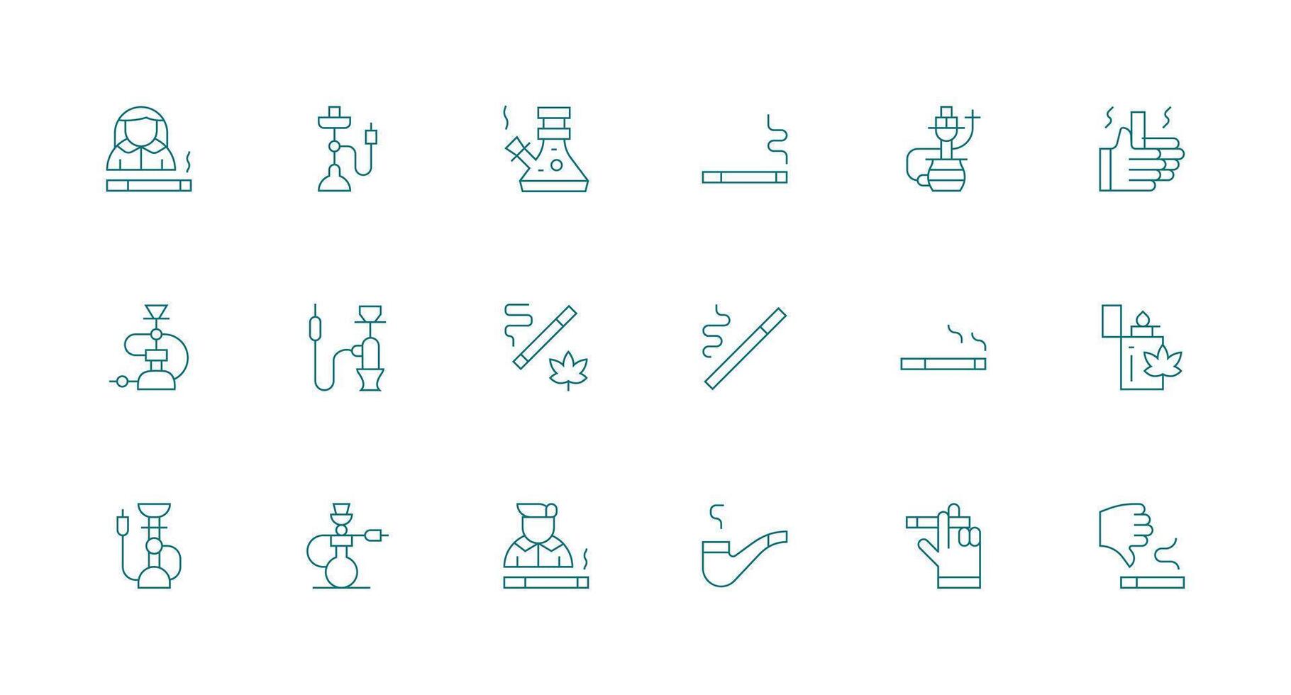 Smoking Set with 18 Minimal Line Icons Icons Built for Visual Consistency Pack vector