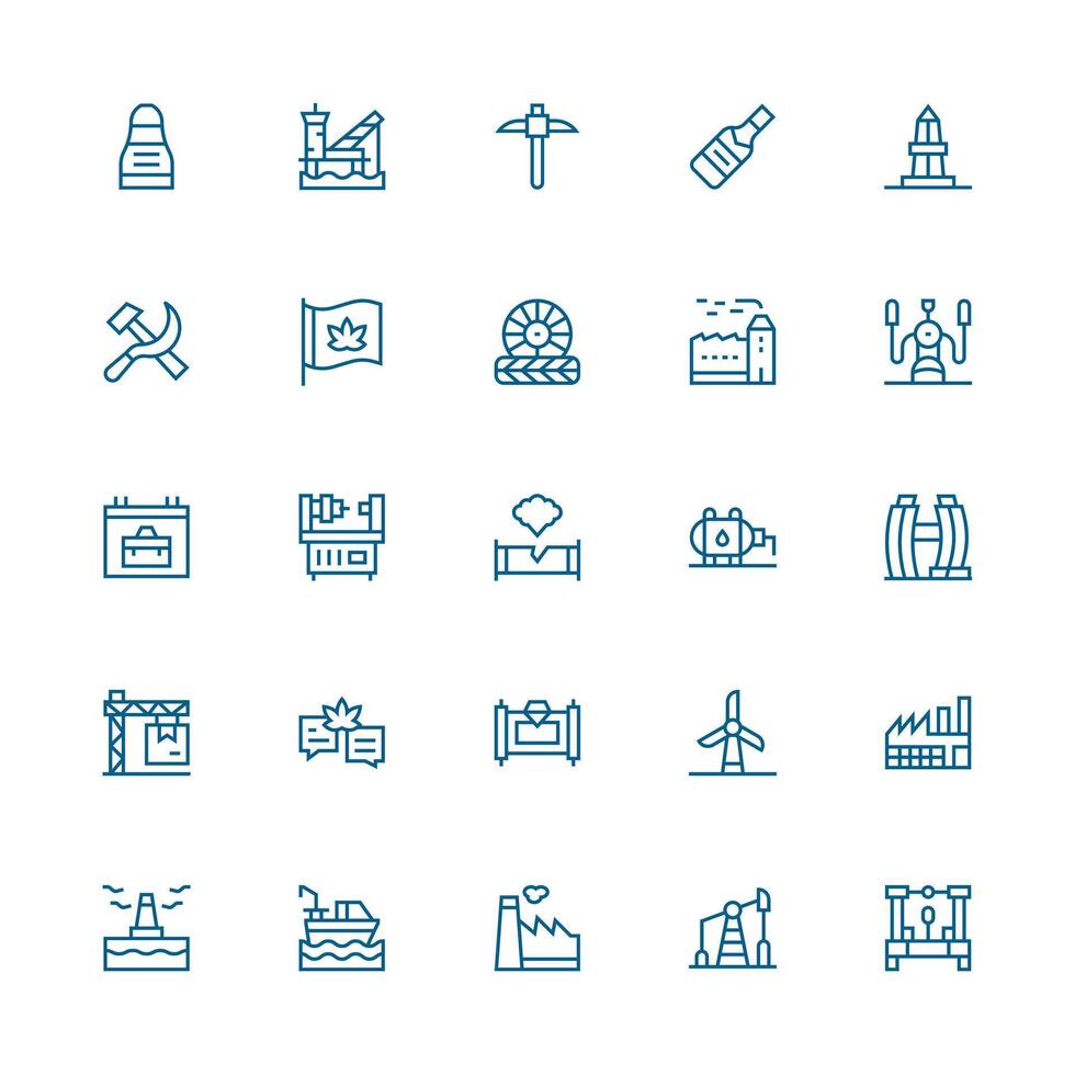 25 Icons for Industry in Medium Stroke Outline Format Complete Icon Bundle for Web Design Free Vector