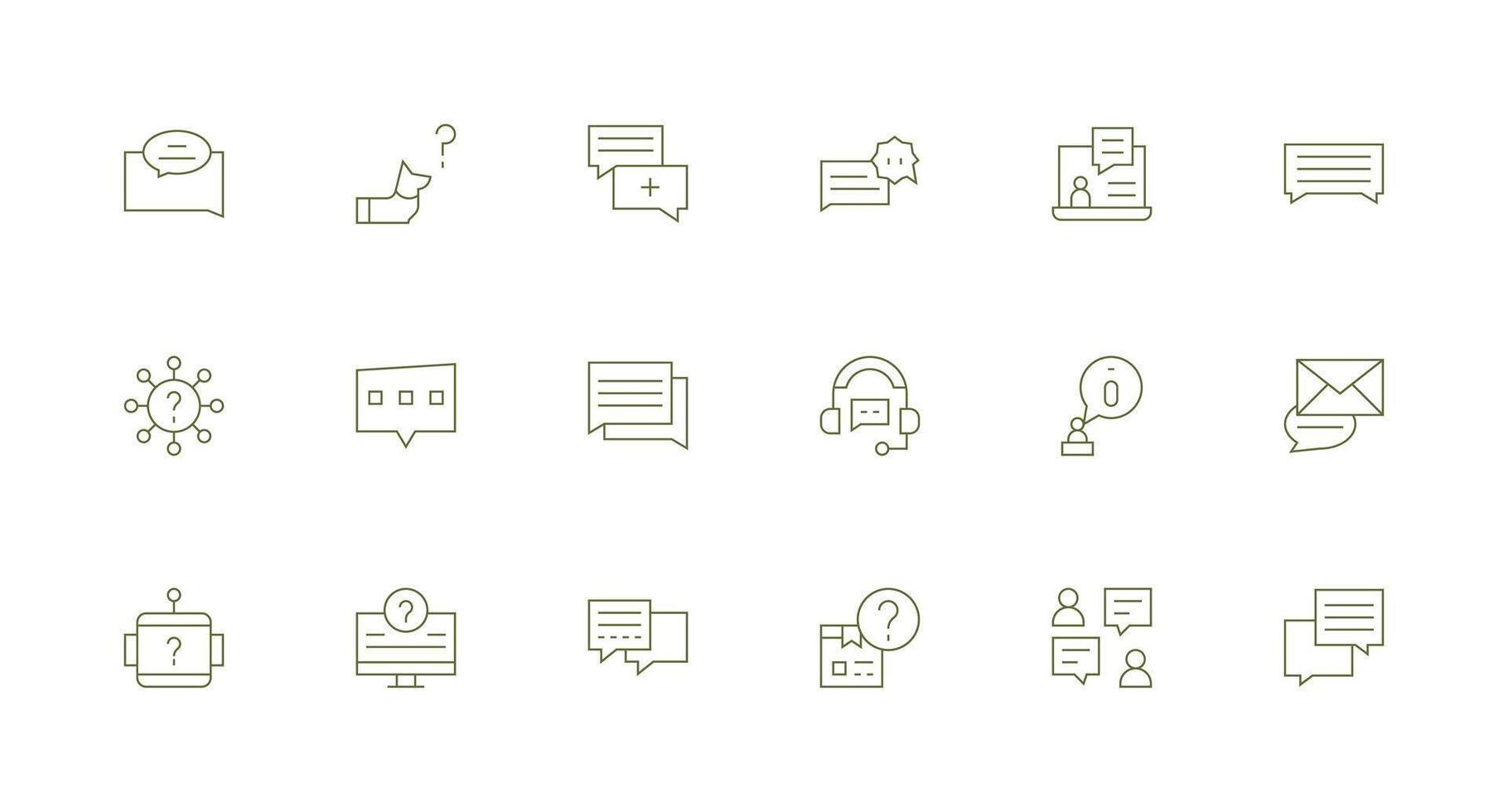 Support Request Design Icons featuring 18 in Minimal Line Style Complete Icon Set for Mobile Apps Free Vector