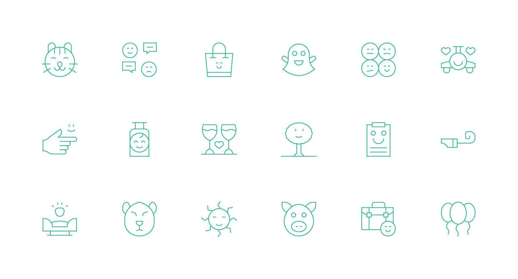 Happy Icon Set with 18 Minimal Line Graphics Organized Icon Pack for Quick Access vector
